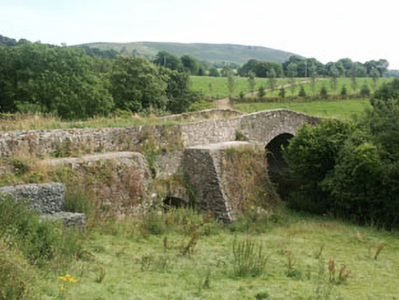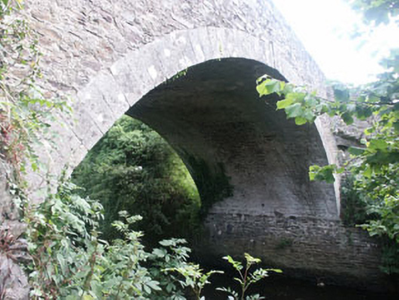 Humpbacked single-arch road bridge over the River Slaney, built c.1820. The bridge is constructed in coursed rubble with dressed granite voussoirs to the large segmental arch. To the north end there is a small flood arch with rough voussoirs, above which there is a further set of dressed granite voussoirs. There are large buttresses to the north end also, probably added in the later 19th or 20th century. The low parapets have dressed granite coping.