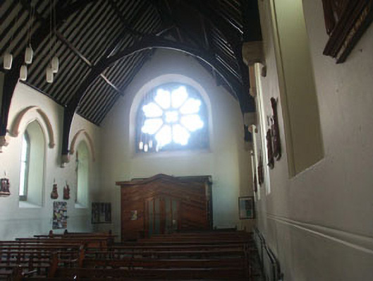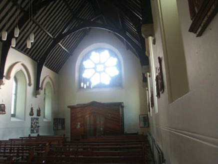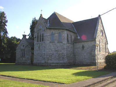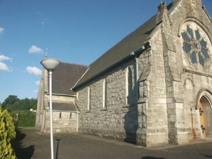 Detached six-bay single-storey Catholic Church, built c.1870. The church is constructed in squared rubble granite and is articulated with reducing buttresses. The plan is cruciform with a canted sanctuary and a gabled sacristy. The timber sheeted double door has decorative strap hinges and is set within a pointed arched opening with drip moulding. Windows are generally lancet with cusps. To the west elevation there is a large spoked rose window while to the east side there is a large plate tracery window. The pitched and partly hipped roof is finished with natural slate with cast-iron rainwater goods. Internally the building is well preserved. The exposed trusses, stations of the cross, and original altar have been retained along with some decorative leaded glass. The church is pleasantly sited by the side of the road.