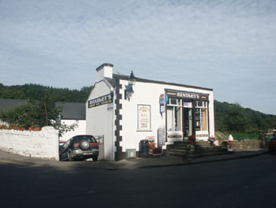 Detached two-bay single-storey house, built c.1870, now in use as a shop. The house is finished in render with block and start quoins. There is a flight of stone steps which rise to the front door. The c.1920s shopfront has a central door with shop windows to either side; these are flanked by narrow timber pilasters. The other window is now blocked with an additional sign. The pitched roof in finished with natural slate. The chimneystack has a slightly corbelled cap and no pot. The signboard is painted. The house is road fronted at the approach to the Avoca River.