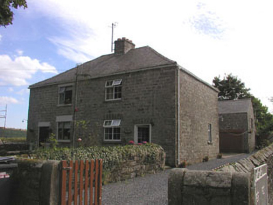 Detached two-bay two storey pair of workers' houses, built c.1850. These are finished in squared granite block. The replacement panelled doors are set within flat-headed openings. Window openings are flat-headed with replacement top-hung frames. The hipped roof is finished with natural slate and has cast-iron rainwater goods. The chimneystack is finished in render with slightly corbelled caps and clay pots. The houses are set back from the road behind small gardens with low rubble walls.
