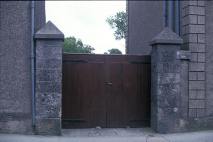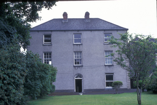 Detached three-bay three-storey house, dated 1816, on a rectangular plan; three-bay three-storey rear (west) elevation. Hipped slate roof with clay ridge tiles, paired red brick Running bond central chimney stacks having corbelled stepped stringcourses below capping supporting yellow terracotta pots, and cast-iron rainwater goods on cut-limestone eaves with cast-iron downpipes. Roughcast walls on rendered plinth with rusticated rendered piers to corners. Segmental-headed central door opening with rendered surround framing timber panelled door having fanlight. Square-headed window openings with drag edged cut-limestone sills, and rendered surrounds framing one-over-one (ground floor), six-over-six (first floor) or one-over-one (top floor) timber sash windows. Round-headed central half-landing window opening to rear (west) elevation with drag edged cut-limestone sill, and rendered surround framing fanlight eight-over-eight timber sash window. Square-headed window openings with drag edged cut-limestone sills, and rendered surrounds framing six-over-six timber sash windows. Set in landscaped grounds with rear (west) elevation fronting on to street.