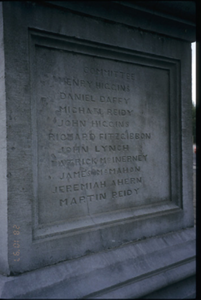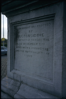 Statue of Maid of Erin, erected 1881, comprising robed female figure, set on drum surmounting Doric column with plinth. Intertwined shamrocks around drum. Erected in memory of the Manchester Martyrs. Similar in design to O'Connell Monument in O'Connell Square. Relocated to present site in 1966. Set on red and grey paved roundabout at junction of four roads.