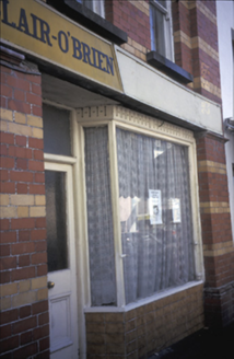 Corner-sited end-of-terrace two-bay three-storey house, built c. 1900, with retail outlet to ground floor and two-bay three-storey return. Two-bay single-storey flat-roofed extension added to return c. 1970. No longer in commercial use. Pitched slate roof with rendered chimneystack. Flat roofs to return and extension. Red brick walls with yellow brick banding and double-height pilasters. Plastic sign over former retail outlet. Rendered walls to gable. Segmental-arched window openings to upper floors with timber sliding sash windows. Square-headed openings to gable and return with timber sliding sash windows. Fixed timber window and recessed glazed door to shopfront. Two-storey outbuilding to rear, now derelict.