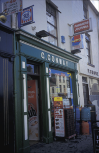 Terraced single-bay three-storey house with dormer attic, built c. 1860. Shopfront inserted to ground floor, c. 1940. Renovated, c. 1985, and, 2000. Pitched slate roof with rendered chimneystack, metal rooflight and cast-iron rainwater goods. Roof renewed in 2000. Painted lined-and-ruled rendered walls. Various projecting plastic shop signs to first floor. Shopfront comprising panelled pilasters flanking fixed window and timber door with overlight, having fascia, lettering and cornice above. Replacement windows to upper floors.