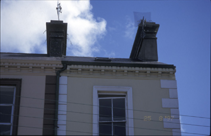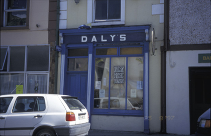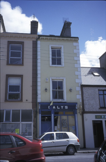 Terraced single-bay three-storey house, built c. 1870. Renovated c. 1900, with timber shopfront inserted to ground floor. Dormer attic added, c. 1985. Pitched artificial slate roof with rendered chimneystack, decorative eaves course, cast-iron rainwater goods and rooflight. Lined-and-ruled rendered walls with render quoins and architraves to upper floors. Timber shopfront comprising fluted pilasters flanking fixed window and timber panelled door with toplight, having fascia, lettering, fluted consoles and moulded cornice above. Timber sliding sash windows to upper floors.