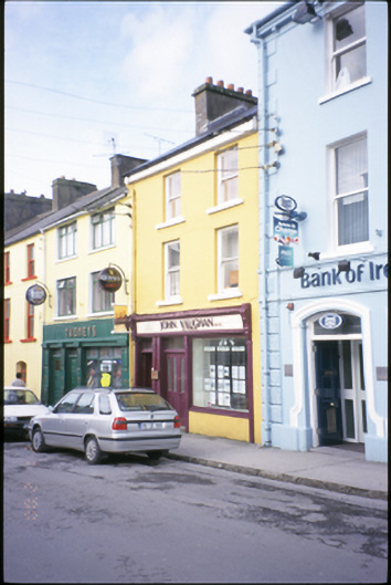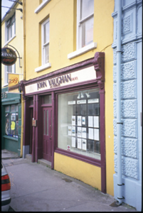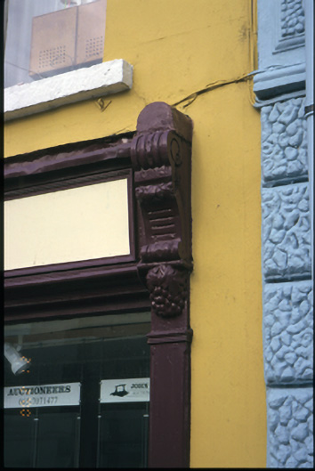Terraced two-bay three-storey house, built c. 1860, with timber shopfront inserted, c. 1900. Pitched artificial sate roof with concrete ridge tiles, cast-iron rainwater goods, timber box eaves and rendered chimneystacks. Lined-and-ruled rendered walls. Shopfront comprising pilasters flanking fixed window and timber panelled and timber glazed double leaf doors with overlights, having carved consoles, fascia and cornice above. Retaining timber sliding sash windows to upper floors. Retaining interior features.
