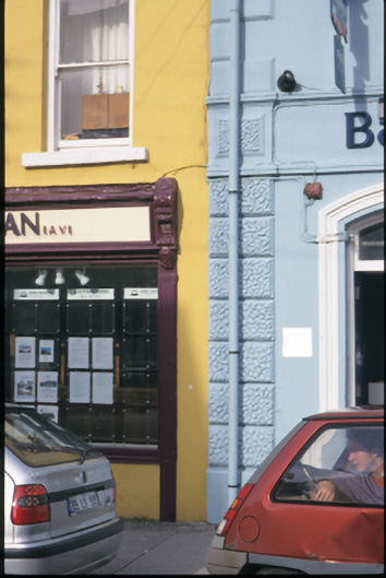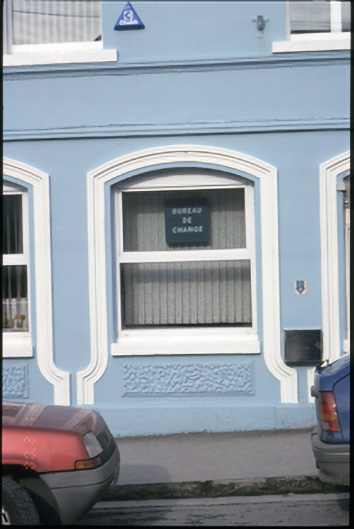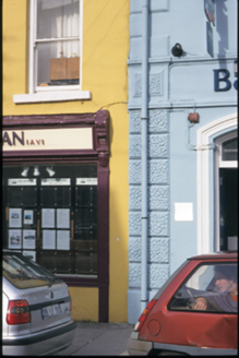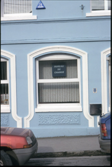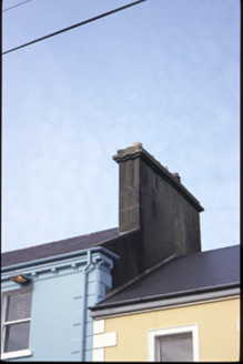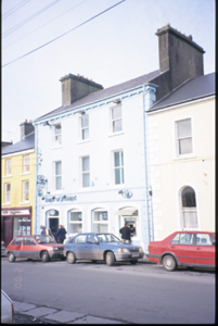 Terraced three-bay three-storey purpose-built bank and manager’s house, built c. 1870. Ground floor renovated, c. 1990. Pitched slate roof with concrete ridge tiles, cast-iron rainwater goods, timber box eaves, consoled cornice, rendered chimneystacks and yellow clay pots. Rendered walls with vermiculated quoins and panels to ground floor, moulded render fascia over ground floor openings and raised quoins to upper floors. Segmental-arched openings with moulded architraves, concrete sills, timber panelled double leaf doors, replacement uPVC windows and ATM to ground floor. Retaining original timber sliding sash windows to upper floors.