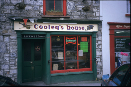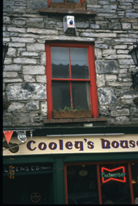 Terraced single-bay three-storey house, built c. 1870, with shopfront inserted c, 1920. Pitched slate roof with concrete ridge tiles, cast-iron rainwater goods and rendered chimneystacks. Exposed rubble stone walls. Timber shopfront comprising pilasters flanking tripartite window and timber panelled double leaf doors with fascia and moulded cornice above. Retaining original timber sliding sash windows to upper floors.