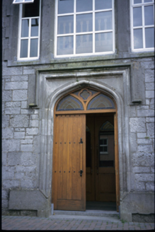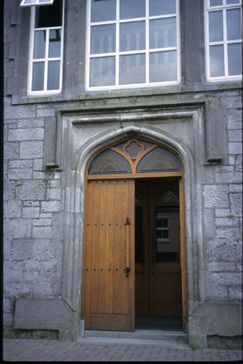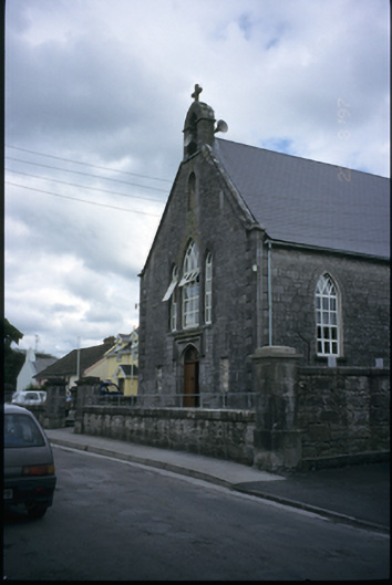 Freestanding T-plan gable-fronted double-height Roman Catholic church, dated 1822, with three-bay gable front and two-bay nave. Two-bay single-storey sacristy added to rear, c. 1995, with inset archaeological fragment to exterior wall. Pitched artificial slate roof with bellcote over entrance gable having cross finial, moulded gable copings and cast-iron rainwater goods. Snecked stone walls with cut-stone quoins, niche to gable and blind openings flanking entrance door. Rendered walls to transepts. Four-centred arch door opening with timber sheeted double leaf doors, fanlight and label moulding. Lancet window openings, set in tripartite arrangement over entrance door. Replacement uPVC windows. Retaining interior features. Cut-stone gate piers set in rubble stone walls to site.