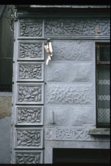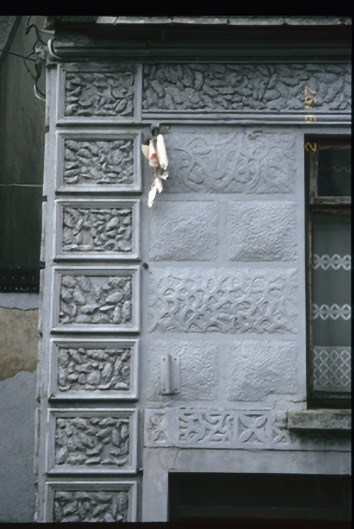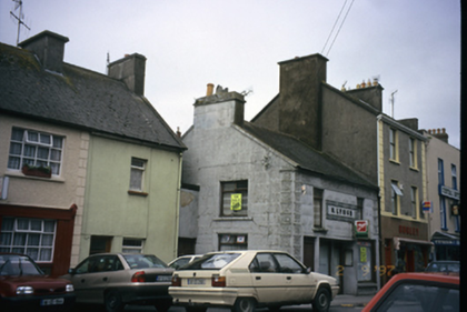 End-of-terrace two-bay two-storey house, built c. 1890, with render façade enrichments. Ground floor remodelled to accommodate commercial use, c. 1970, now disused to ground floor. Pitched artificial slate roof with rendered chimneystack having stone and clay pots. Lined-and-ruled rendered vermiculated block effect walls with decorative render quoins and eaves band. Decorative render banding surrounding ground floor openings, with decorative render name fascia and letter above. Replacement timber casement windows to first floor. Fixed timber windows and timber glazed and matchboard doors to ground floor.