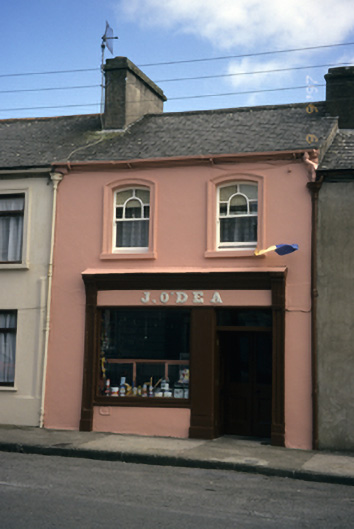 Terraced two-bay two-storey house, built c. 1890, with timber shopfront to ground floor. Pitched artificial slate roof with rendered chimneystack and cast-iron rainwater goods. Rendered walls with moulded render architraves to first floor. Shopfront comprising pilasters flanking openings with fluted consoles, fascia, marbleised lettering and moulded cornice above. Timber panelled double leaf doors with overlight and fixed window to shopfront. Segmental-arched windows with timber sliding sash windows, having decorative tracery to upper panes.