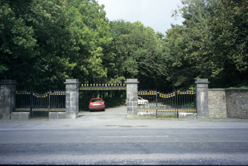 Remains of Kilrush House estate including: Gateway on a symmetrical plan comprising pair of drag edged dragged limestone ashlar panelled piers on plinths having beaded cornices on friezes on stringcourses below block capping with drag edged dragged limestone ashlar outer piers on plinths having beaded cornices on friezes on stringcourses below block capping supporting spear head-detailed cast-iron railings centred on spear head-detailed cast-iron pedestrian gates. Road fronted at entrance to grounds of Kilrush House. NOTE: A relic of the Kilrush House estate following the destruction (1897) and subsequent demolition (1973) of the eponymous country house (1808) described as 'a handsome and spacious mansion immediately adjoining the town [Kilrush] and commanding an extensive view of the Shannon' (Lewis 1837 II, 205).