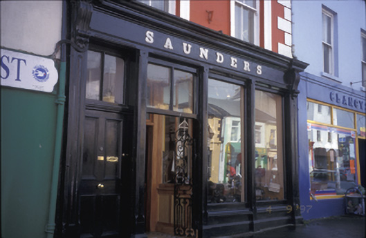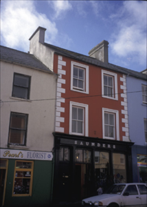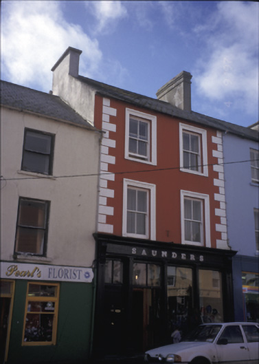 Terraced two-bay three-storey house, built c. 1800, shopfront inserted, c. 1900. Pitched artificial slate roof with rendered chimneystacks. Rendered walls with render quoins and moulded architraves to upper floors. Timber shopfront comprising chamfered and panelled pilasters flanking fixed windows and timber panelled doors with overlights, having carved consoles, fascia, marbleised lettering and moulded cornice above. Retaining interior features.