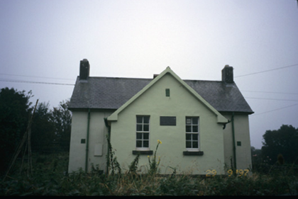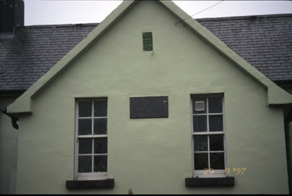 Detached T-plan four-bay single-storey national school, dated 1929, comprising gabled two-bay central projection flanked by recessed end bays. Pitched slate roof with brick chimneystacks and cast-iron rainwater goods. Rendered walls with date plaque to projecting gable. Timber sliding sash windows with stone sills. Rendered piers and iron gates set in roughcast rendered boundary walls.