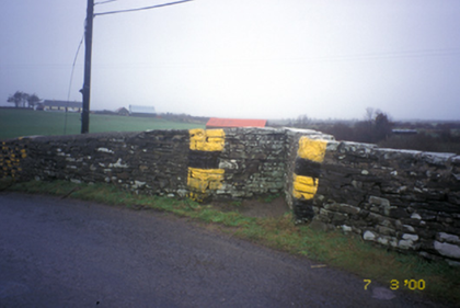 Double-arch humpback road bridge over river, built c. 1820, with V-cutwaters and pedestrian refuge. Coursed rubble stone walls with cut-stone copings and voussoirs.