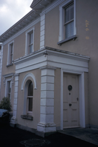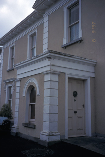 Detached five-bay two-storey former house, built c. 1810, with pedimented central breakfront having flat-roofed projecting porch. Now in use as hospital. Fourteen-bay three-storey flat-roofed wing added to left hand side and six-bay two-storey wing added to right hand side, 1953. Hipped artificial slate roof with eaves consoles and cast-iron rainwater goods. Rendered walls with render quoins, render architraves, consoled entablatures over ground floor opening and moulded eaves course. Moulded cornice and label mouldings over round-headed openings to porch. Timber sliding sash windows and timber panelled door. Detached three-bay single-storey outbuilding to site.