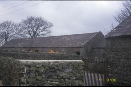 Detached four-bay single- and two-storey former estate worker's house with dormer attic, built c. 1875, comprising two-bay two-storey block with two-bay single-storey wing having dormer attic. Now in use as private house. Pitched slate roof with cast-iron rainwater goods, rendered and red brick chimneystacks and gabled dormer. Rendered walls with inscribed plaque. Timber sliding sash windows. Timber panelled door. Detached multiple-bay single-storey rubble stone outbuilding with round-headed integral carriage arches, built c. 1875. Detached three-bay single-storey former gate lodge with gabled projecting porch to centre, c. 1890, now in use as private house. Cut-stone gate piers to site.