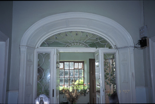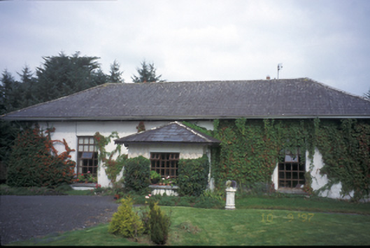 Detached three-bay single-storey house, built c. 1810, with three-bay three-storey return and single-bay single-storey projecting porch addition to centre. Possibly incorporating fabric of earlier building. Hipped artificial slate roof with carved timber eaves soffits. Roughcast rendered walls. Replacement timber sliding sash windows. Timber sliding sash windows to return. Original segmental-arched doorcase to porch interior, comprising timber panelled door, flanked by sidelights with fanlight above. Retaining interior features. Cut-stone panelled piers with stile and wrought-iron gates. Detached single-storey outbuildings to rear.