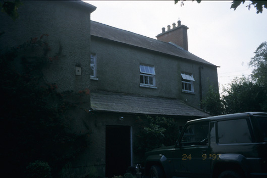Detached L-plan two-bay two-storey former glebe house, built c. 1810, with three-bay two-storey return to rear having two-bay single-storey lean-to addition. Now in use as private house. Hipped and pitched slate roofs with red brick chimneystack. Roughcast rendered walls. Replacement timber windows. Original round-headed entrance with timber doorcase having fluted frieze and fanlight now enclosed by porch. Retaining interior features. Lined-and-ruled rendered piers with cast-iron gates, set in rubble stone boundary walls.