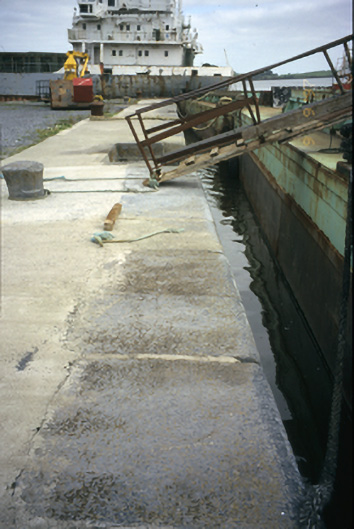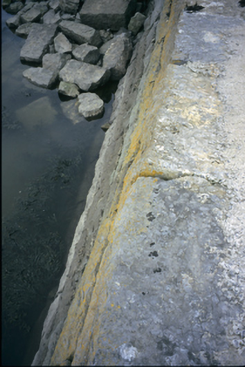 L-plan cut-limestone quay wall, built c. 1820, with cut-stone and cast-iron bollards. Altered, c. 1970, to accommodate use as pier.