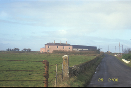 Detached L-plan three-bay two-storey house, built c. 1800, with three-bay two-storey return. Flat-roofed porch added to centre and bay window removed, c. 1980. Hipped slate and artificial slate roofs with cast-iron rainwater goods and three rendered chimneystacks. Rendered walls. Timber sliding sash and replacement windows. Timber panelled door to porch. Detached five-bay two-storey outbuilding, with dormer attic added, c. 1985. Pair of cut-stone gate piers. Pair of rendered panelled piers with moulded pyramidal capping.