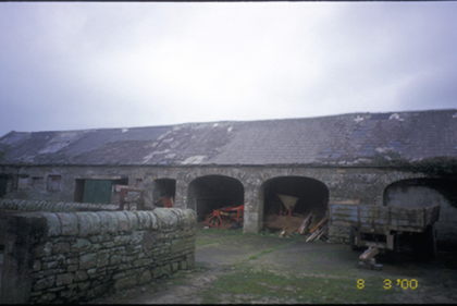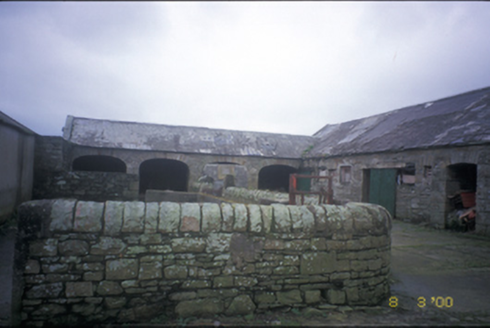 Detached L-plan three-bay single-storey house, built c. 1880, with gabled projecting porch to front and two-bay return to rear. Pitched artificial slate roof with cast-iron rainwater goods and rendered chimneystacks. Pebbledashed walls with render plinth and quoins. Replacement fittings to openings. Formerly having plaque inscribed with Leconfield initial. Detached thirteen-bay single-storey rubble stone-built outbuilding with integral carriageways. Rubble stone boundary walls with curved copings.