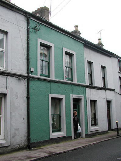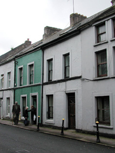 Terraced three-bay two-storey house with dormer attic, built 1908, as a group with the adjoining pair of houses to the east. Pitched slate roof with rendered chimneystack and rooflights. Rendered walls with string course between floors and having raised render surrounds to openings. Timber sliding sash windows, having cast-iron sill guard to ground floor window. Timber panelled door.