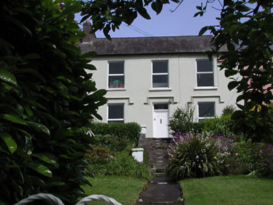 Terraced three-bay two-storey house, built 1874, as part of a terrace of eight with the adjoining houses to the east and west. Pitched slate roof with rendered chimneystack. Rendered walls with label mouldings over ground floor openings. Replacement uPVC casement windows and timber panelled door.