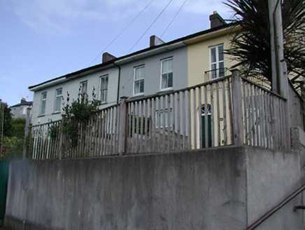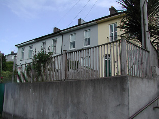 End-of-terrace two-bay two-storey house, built c. 1840, as part of a terrace of four with the adjoining houses to the west. Pitched slate roof with rendered chimneystack. Rendered walls. Round-headed door opening with replacement timber panelled door having fanlight above. Replacement uPVC windows to first floor and pair of timber glazed doors inserted to ground floor. Tall red brick chimneystack to rear of site.