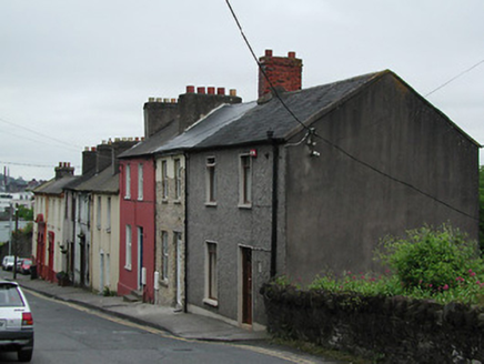 Pair of terraced houses, built 1861, with four-storey elevation to the south and two-storey elevation of the north. Comprising of a two-storey house accessed from the north, set on top of a two-storey house accessed from the south. Built as a group with the adjoining buildings to the east and west. Pitched slate roof having rendered chimneystack. Rendered walls. Replacement casement windows and timber panelled doors.
