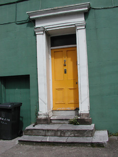 Terraced double-pile three-bay three-storey house, built c. 1750. Pitched slate roof with rendered chimneystacks, rendered parapet and moulded cornice. Rendered walls. Timber sliding sash windows to upper floors, set in tripartite arrangement to ground floor. Timber doorcase, c. 1860, comprising of pilasters flanking timber panelled door and toplight having entablature above. Timber matchboard door to west, leading to rear.