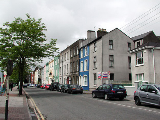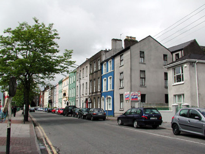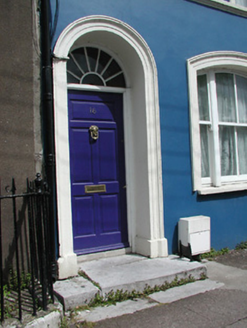 Terraced two-bay three-storey house, built c. 1820. Pitched slate roof with rendered chimneystacks. Rendered walls having moulded string courses at sill levels of first and second floors. Segmental-arched window openings with moulded render surrounds. Timber sliding sash window set in tripartite arrangement to ground floor. Replacement uPVC windows to upper floors. Round-headed door opening having moulded render surround, replacement timber panelled door and fanlight.
