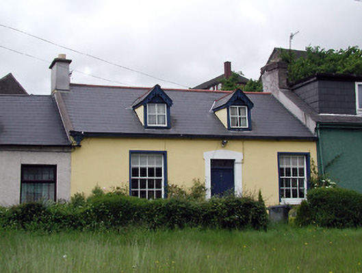 Terraced three-bay single-storey house with dormer attic, built 1836, as part of a group of ten houses set on three sides of a green square. Pitched tile roof with rendered chimneystack and pair of gabled dormers having carved timber bargeboards. Rendered walls having raised render surround to front door. Timber sliding sash windows and timber panelled door with toplight. Cast-iron iron railings and gates with rendered plinth and limestone gate piers to site.