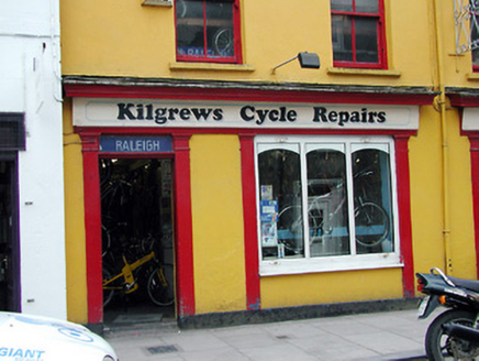 Terraced two-bay three-storey former house, built 1898, as a pair with the adjoining building to the west. Now in use as retail outlet. Pitched slate roof with rendered chimneystack. Rendered walls with string course at sill level of second floor. Timber sliding sash windows to upper floors. Timber shopfront, c. 1900, comprising of pilasters flanking timber panelled door and replacement uPVC window, with fascia and cornice above.