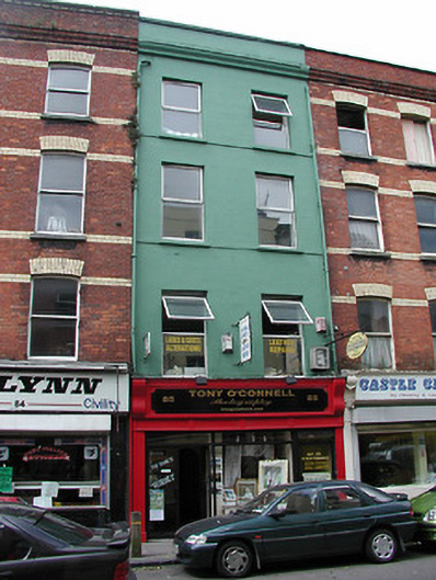 Terraced two-bay four-storey former house, built c. 1820, now in use as retail outlet. Pitched slate roof with rendered parapet and moulded cornice. Rendered walls having platbands at sill levels of upper floors. Replacement uPVC windows to upper floors. Shopfront, c. 1999.