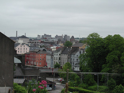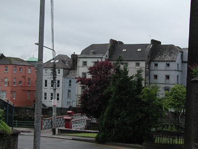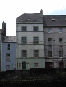 Terraced double-pile two-bay four-storey former house over basement, built c. 1750, now in use as flats. Hipped and pitched slate roofs having rendered chimneystack, rendered parapet, moulded cornice and rooflights. Rendered walls with render platbands at sill levels of upper floors and having moulded render surrounds to window openings. Timber sliding sash windows. Round-headed door openings, having moulded archivolt and flanked by sidelights. Timber panelled door with fanlight. Retaining interior features.