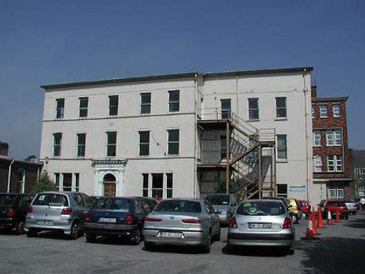 Detached five-bay three-storey maternity hospital, built 1861, with three-bay recessed side extension, having single-storey extensions to side and rear, c. 1950. Pitched roof with flat roofed single storey extensions. Painted render finish. String courses at first and second floor window cill level and above second floor window head level. Stone plaque with date 1861 above first floor window. Square headed door openings with single pane timber sliding sash windows, tripartite to ground floor. Moulded architraves to ground and first floor window openings. Round headed door opening with decorative doorcase with double leaf timber panelled door and plain fanlight. On its own grounds with parking area to front and east side, single storey additions to west and north.