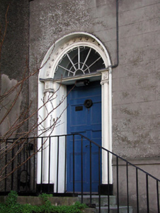 Terraced two-bay two-storey over raised basement house, c. 1800; annexe to rear. Pitched roof with rendered chimney stack. Ruled and lined render finish. Plat band to ground and first floor cill levels. Camber headed window openings with cills and timber sliding sash window. Eight over eight pane windows to the ground floor, six over six pane to the first floor, timber casement window to basement c. 1980. Round headed door opening with highly decorative door case having engaged Ionic timber columns, archivolt with paterae and segmental fanlight. Timber panelled door. Steps up to entrance door with plain wrought iron rail. Enclosed yard area to rear.