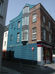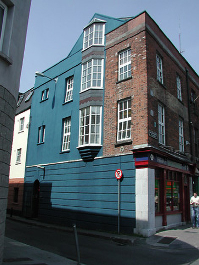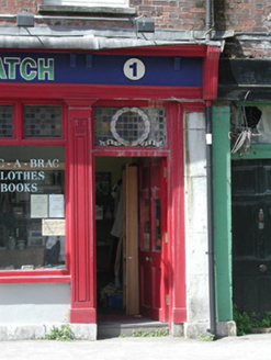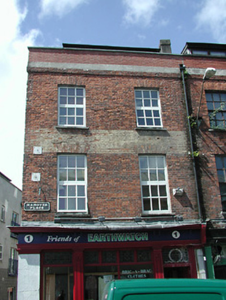 End-of-terrace two-bay three-storey house, c. 1830, reconstructed and extended at rear, c. 1993, in office and residential use, with separate access to upper floors; one of three. Pitched roof with dormer extension. Rebuilt red brick parapet with plain coping and having cornice removed. Red brick façade in Flemish bond to Hanover Place. Square headed openings to upper floors having soldier arches, cills and replacement uPVC windows. Remains of original shopfront with squared limestone pilasters and plinth band, and incised timber pilasters. Timber panelled entrance door to ground floor having garland decoration to stained glass leaded overlight. Display windows having some stained glass leaded pane. Red brick and painted render finish to Hanover Street elevation, coursed painted render to ground floor. Mainly square headed window openings as main façade, with one bay having an oriel window to first, second and attic floors. Windows are replacement uPVC. Round headed entrance opening to upper floors. Corner site, street frontage.