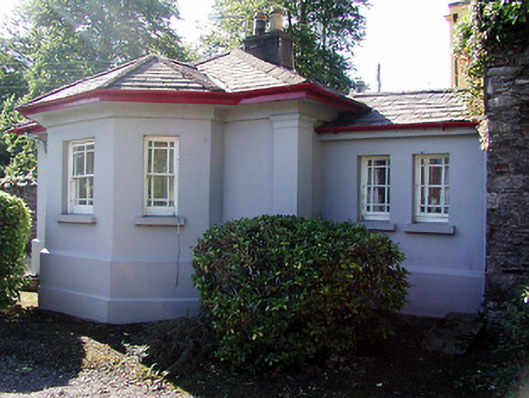 Three-bay single-storey gate lodge, c. 1865, with annexe to rear. Hipped roofs with deep overhanging eaves and eaves course. Rendered chimney stack with oversailing courses. Painted render finish with pilasters and deep plinth band. Bay window to north elevation. Gabled entrance porch with plain barge boards and tooled deep threshold step. Square headed openings, window having cills. Windows are timber sliding sash Wyatt style, to all but south elevation which are timber sliding sash two over two pane. Timber panelled entrance door. Within Bishop's Palace grounds. Limestone gate piers with sunk panels and carved cornices, cast iron railings with pair of gates.