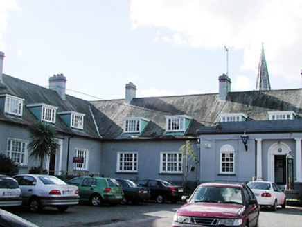 Garda Station, c. 1935. Building is an L-shape with a seven-bay single-storey block having a three-bay breakfront, and a three-bay single-storey wing having two-storey end blocks with residential accommodation to two-storey blocks. Pitched and hipped roofs with flat roofed dormers to single-storey blocks. Rendered chimney stacks with brick cornice band. Painted roughcast render finish with render plinth band. Plain painted render finish to breakfront. Simple parapet to breakfront. In antis Doric columns flanking main entrance, a square headed opening with blocked tympanum and plain orders. Square headed window openings with cills. Wyatt windows. Six over six pane timber sliding sash windows to breakfront openings, which have a blocked fanlight effect. Entrance doors to residential accommodation have square headed door openings with original timber panelled entrance doors, plain overlights and canopies over porch. Built within walls of Elizabeth Fort.