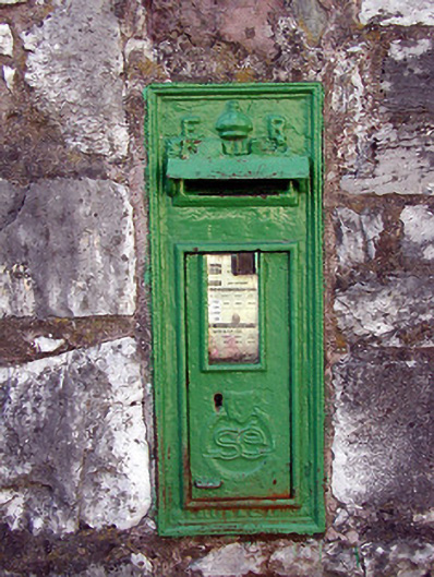 Fine example of an early-twentieth century letterbox, complete with two monograms. Significant for the social history of Ireland, as well as being a good example of contemporary industrial design.