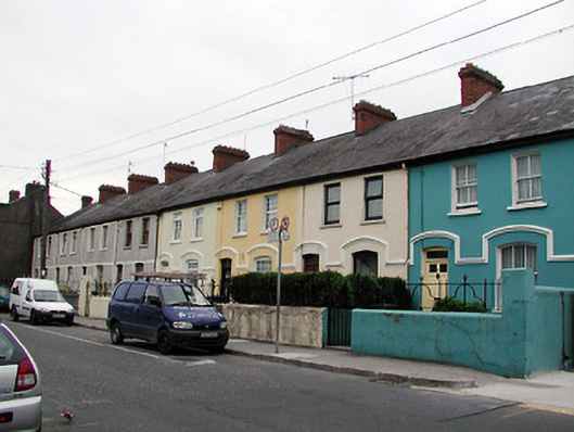 Terraced two-bay two-storey house, built c. 1901, as a group of four with the adjoining houses to the north and south. Pitched slate roof having red brick chimneystacks. Rendered walls with moulded render continuous label mouldings over segmental-arched ground floor openings. Replacement windows and door. Rendered boundary walls having wrought-iron railings and gate.
