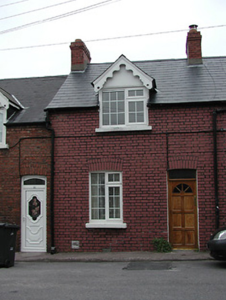 Terraced two-bay single-storey house with dormer attic, built c. 1903, as a group of thirteen with the adjoining houses to the south-west and north-east. Pitched tile roof with red brick chimneystack and gabled dormer window having carved timber bargeboards. Red brick walls with segmental-arched openings to ground floor. Replacement windows and door.
