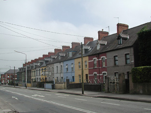 Terraced two-bay two-storey house with dormer attic, built c. 1890, as part of a terrace of fourteen with the adjoining houses to the north and south. Pitched slate roof having red brick chimneystack, gabled dormer window and rooflight. Rendered walls with platband between floors and continuous label mouldings over openings. Replacement windows and door. Rendered boundary wall having wrought-iron railings and gate.
