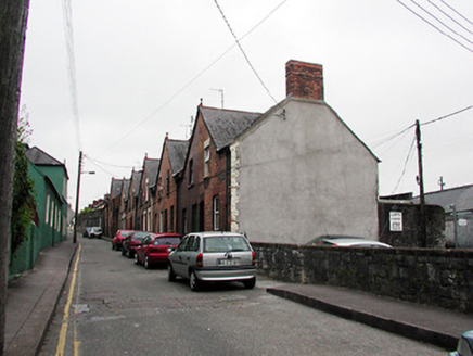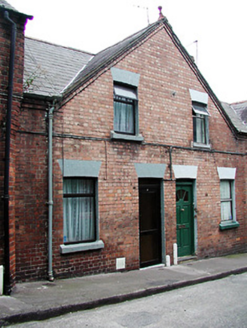Terraced two-bay two-storey house, built c. 1899, having shared gable-fronted bay with the adjoining house to the west. Constructed as a group of ten with the adjoining houses to the west. Pitched slate roof having red brick chimneystack and terracotta finial. Red brick walls with limestone sills to window openings and having limestone threshold to front door. Replacement windows and door.