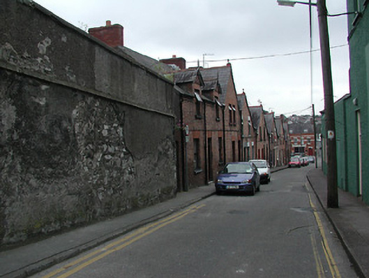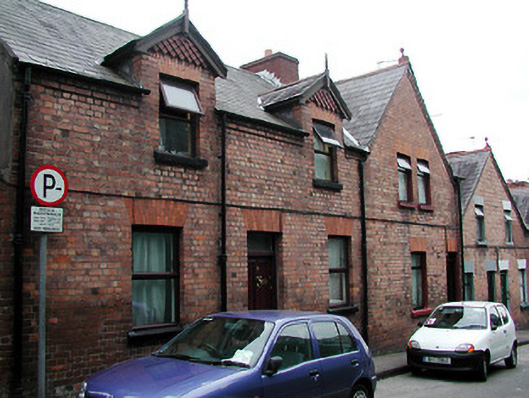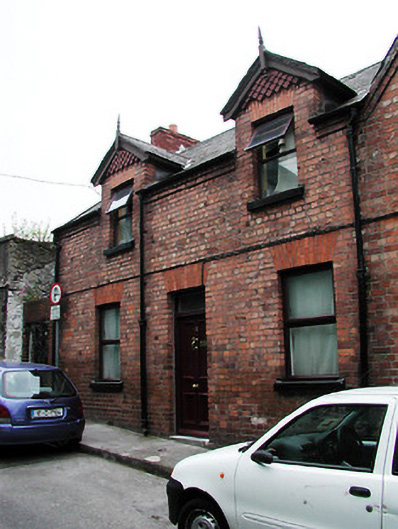End-of-terrace three-bay two-storey house, built c. 1900. Pitched slate roof with red brick chimneystack and gabled dormer windows having timber bargeboards, finials and fish scale pattern infill. Red brick walls having limestone threshold. Timber panelled door and replacement windows.