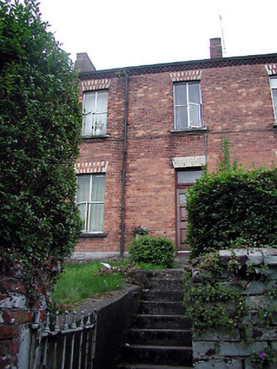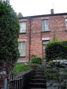Terraced two-bay two-storey house, built c. 1865, as group of five with the adjoining houses to the east and west. Pitched tile roof having red brick chimneystack. Red brick walls with brick eaves course, yellow brick dressings and limestone sills to openings. Replacement windows and timber panelled door having toplight. Rendered boundary walls with red brick piers and flight of steps leading to entrance door.