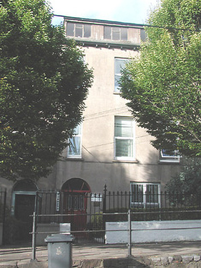 Terraced three-bay three-storey house, c. 1835, with round-headed opening, bracketed eaves course and wrought iron front railings; dormer extension added, c. 1960; slate pitched roof and ruled render finish.