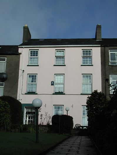 Terraced three-bay three-storey over half-basement house, c. 1835, with square-headed door opening. Slate pitched roof and painted rendered walls. Annexe and mews outbuilding to rear and front railings. Windows replaced with uPVC.